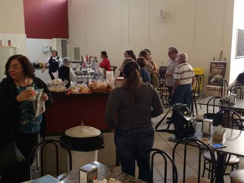 É nesse ambiente que a comunidade interna e externa de nossa Casa encontra grande e deliciosa variedade de doces, salgados e bebidas, produzidos com muito cuidado e carinho pela acolhedora equipe de três funcionárias, cinco voluntárias e uma coordenadora.